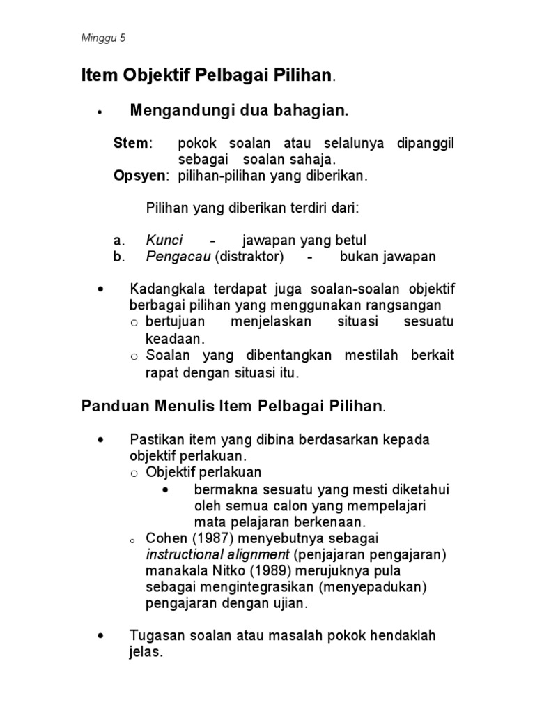 Panduan Membina Item Aneka Pilihan Salah Benar Dan Item Padanan Pdf